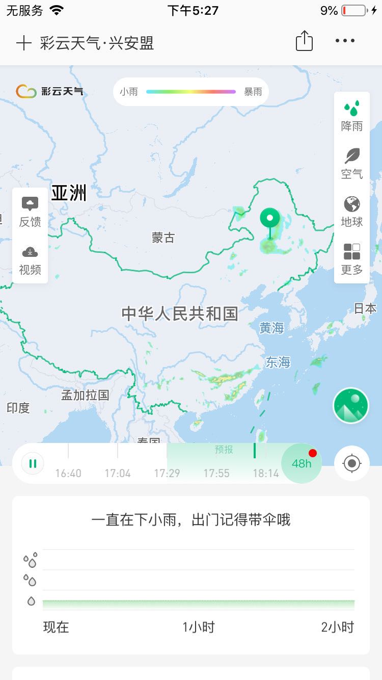 精確到分鐘級(jí)降水預(yù)報(bào) 長(zhǎng)達(dá)五天的多數(shù)據(jù)源天氣預(yù)報(bào) 獨(dú)家全國(guó)降水雷達(dá)拼圖 關(guān)注地址獲取降雨提醒